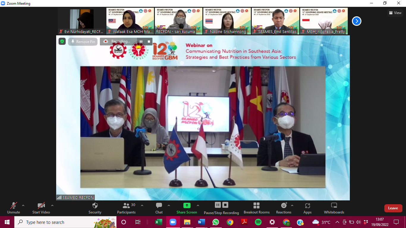 SEAMEO RECFON Webinar Stresses Importance of Nutrition Communication in Southeast Asia